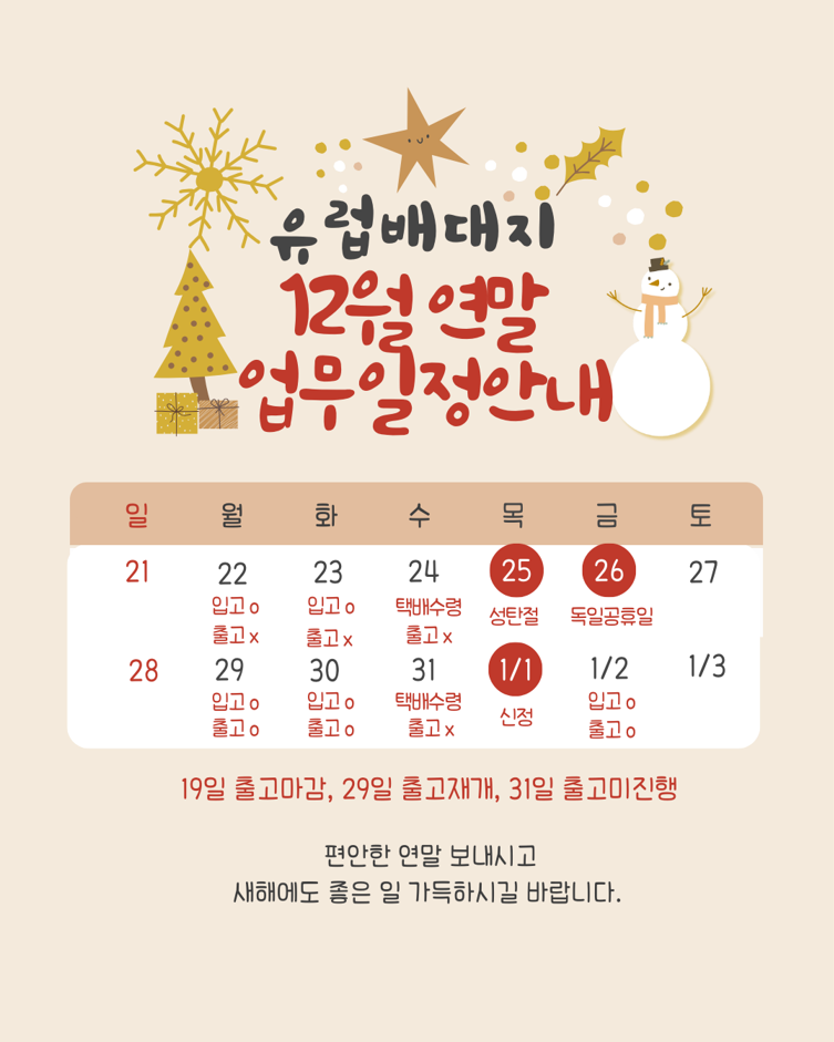 2023년 크리스마스 및 연말 휴무 일정 안내
